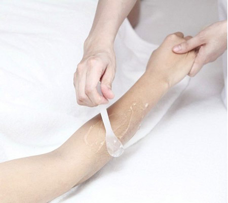 Bước 5 : Làm sạch gel lạnh.Thoa kem dưỡng ẩm giúp làm dịu vùng da vừa triệt lông.